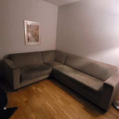 Hörnsoffa sciffong (tidaholm ikea ) sparsam använd lite blekt fläck av solen annars mycket fin hög rygg man sitter bekvämt i den