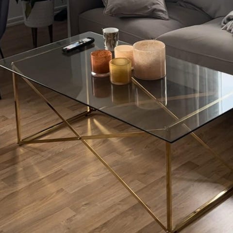 Säljer ett stilrent soffbord med marmormönstrad glasskiva och stabilt underrede i kromad metall. Bordet har en modern och tidlös design som passar bra i de flesta vardagsrum. Använt men i fint skick, inga större skador.
