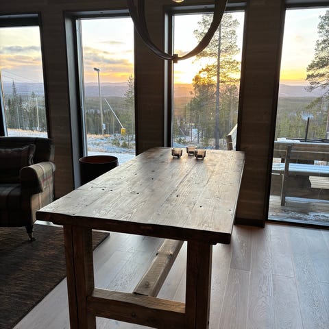 Väldigt fint trä och kan även förlängas så att det får plats med 8 personer.