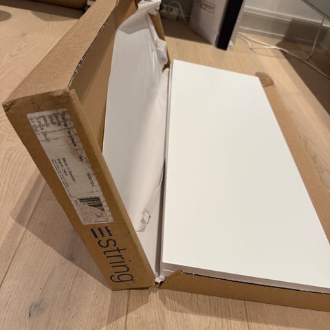 Säljer två beiga gavlar till stringhylla. Storlek 30x75 cm.
