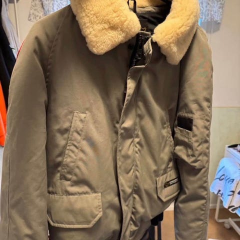 Canada Goose Jacka carson parka storlek L, svart färg och tillverkad i dunmaterial. Designad för herrar och lämpad för utomhusbruk.