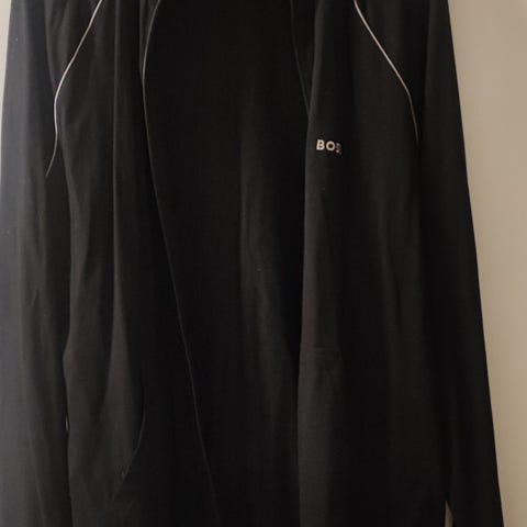 Hugo Boss Bomull Herrjacka i svart färg, storlek L. Tillverkad i bomullsmaterial, lämplig för herrar. Jackan har dragkedja och huva, med detaljer i kontrasterande färg.