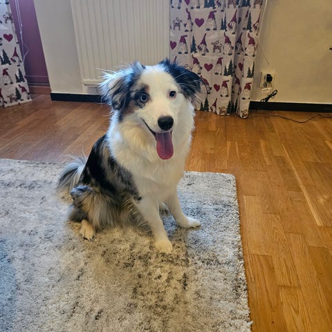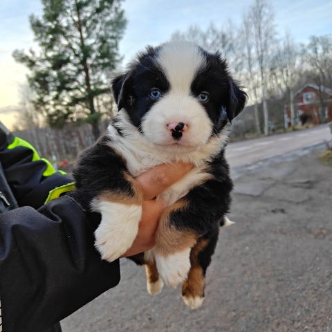 Han är en Miniature American Shepherd som är glad, älskar att träna, har gott föremålsintresse och kamplust. Utställd med fin kritik och har god vardagslydnad. Behöver mer miljöträning och socialträning.