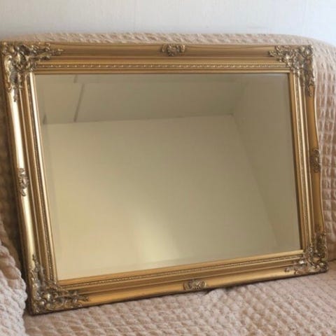 Skick: Mycket gott vintage-skick. Endast lätt yttlig damm/smuts i sprickorna (inget som påverkar utseendet nämnvärt och går enkelt att försiktigt rengöra). Ingen skada på ram. Spegelytan är hel och klar.