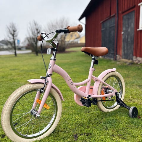 STOY Barncykel 16 tum Vintage Army Green med stödhjul