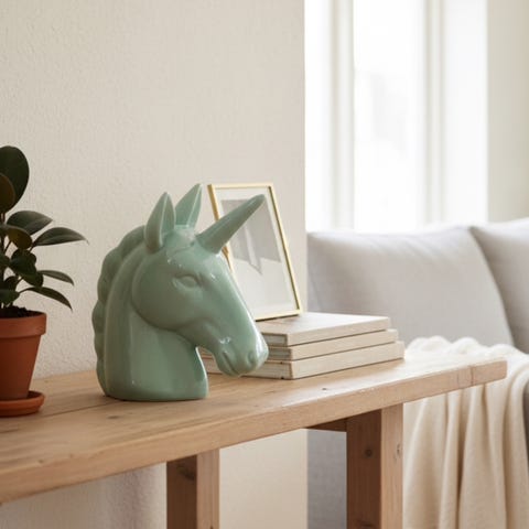 IKEA Dekoration Enhörning med blommor i olika färger. En dekorativ prydnad som kan användas för att försköna rum och skapa en fantasifull atmosfär. Har varit uppsatt i ram så i nyskick