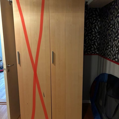 IKEA möbeldelar i mörkbrunt trä. Delarna inkluderar paneler och tillbehör. Garderoben är ned monterad pga, tog för mycket plats. Dörren är lite skadad men fungerar som den ska.