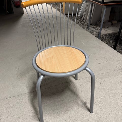 Stapelbara skolstolar / industristolar – trä & metall – 3 st kvar