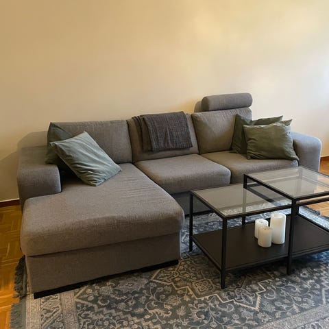 3-sits med divan, 230x90 (150 djup divan). Sittdjup 55, sitthöjd 42. Sittbredd 200.
