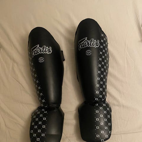 Benskydd från Nordic Fighter, använda få gånger och i fint skick. Lätta och bekväma, passar bra för träning inom kampsport. Storlek Small.