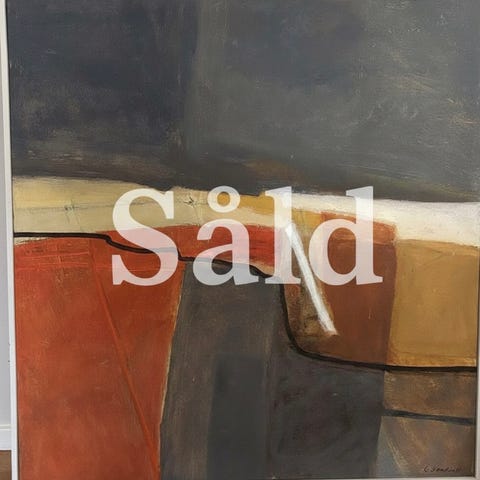 Gerhard Nordström (1925-2019) Komposition, Pompeji. Olja på duk, silvrig träram. Kondition, krackelering, mindre färgbortfall, slitage på ram. Mått 74,5 x 85,5 cm (78 x 89 cm). 15 000 kr eller bud. Endast avhämtning.