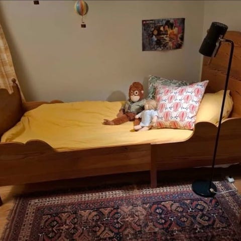 Växasäng i vitlackerad furu med sovplats mått 70x120 cm, men kan förlängas med 50 cm extra. Ribbotten ingår & madrass, inkl. extra madrassen för när sängen dras ut. Anpassar sig när barnet växer!