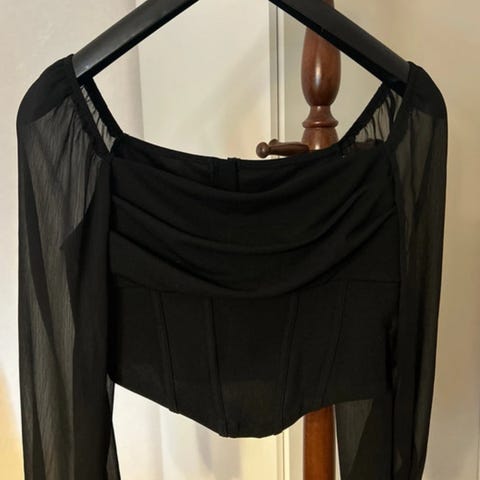 Svart topp med genomskinliga puffärmar storlek s