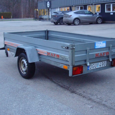 Smidigt släp med möjlighet att lyfta av kapellet samt alla fyra lämmar.