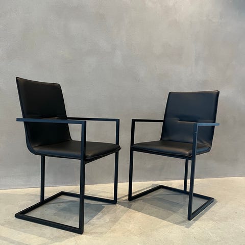 Två stolar i trä med flätad sits och modern design. Stolarna är ouppackade.