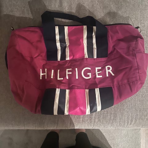Tommy Hilfiger tygväska unisex marinblå med röda ränder