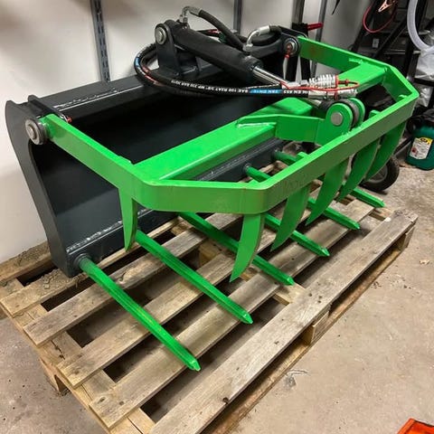 Tvåspakshydraulik gör grävningen till ett enkelt nöje. Försedd med kulhandske för 50mm kula för att enkelt förflytta aggregatet med t.ex en ATV. Vid förflyttning så monteras hjulen bak i kranarmens riktning och vid grävning monteras stödbenen fram i kranarmens riktning.
