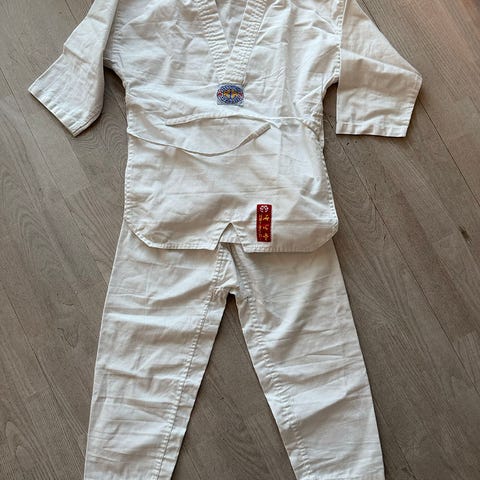 Budo-Nord Kampsportdräkt för barn i storlek 130. Dräkten är vit och tillverkad i bomull. Passar för kampsportsträning och inkluderar jacka, byxor och bälte.