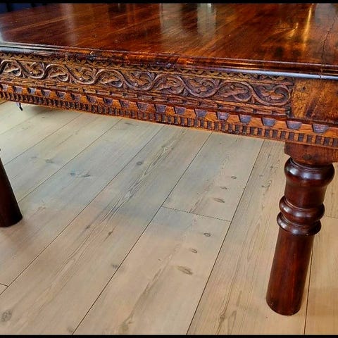 Mina föräldrar säljer det här unika bordet som tillverkats och skeppats från Indien i slutet av 50-talet. Det är tillverkat i Rosewood. Bordet har hanterats varsamt och är i mycket gott skick. Inga större märken.