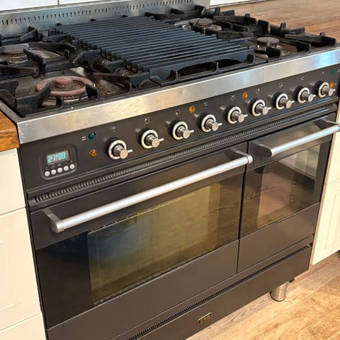 9 år gammal Bertazzoni 90 cm gasspis, ugn el, 90 cm hög. Exklusiv spis i högsta kvalitet. Nypris 65000.