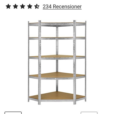 Hörnhylla av metall med MDF-hyllplan 180 cm höjd