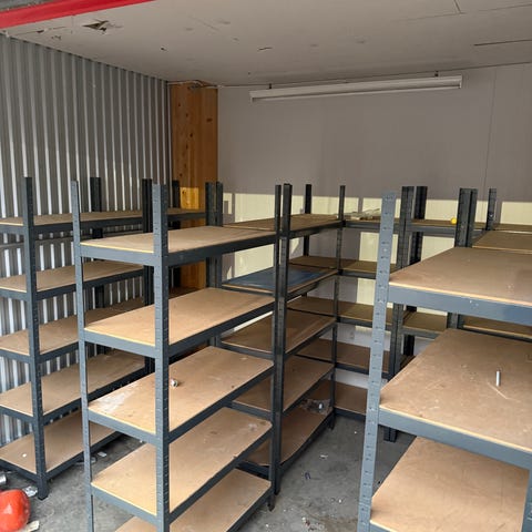 5 hyllplan. Hyllan är lämplig för förvaring i exempelvis lager eller garage.