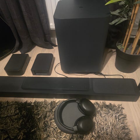 JBL bar 5.1 surround med trådlös subwofer. Inhandlades för 2 år sen för 6000 kr. Riktigt fint ljud på denna. Perfekt för film och musik lyssning.