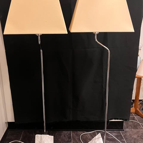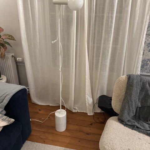 Jättefin äkta 80-tals bågformad/arc floor retrolampa från min bortgångna mammas exklusiva hem. Utdragbar i fint och helt komplett skick, trampströmbrytare. Perfekt för vardagsrumsbord eller annan plats man vill ha punktbelysning.