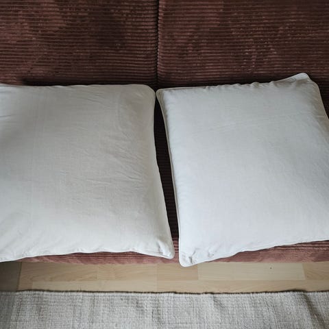 Har hund och katt i hemmet .(Men kuddarna har bara legat i en garderob)