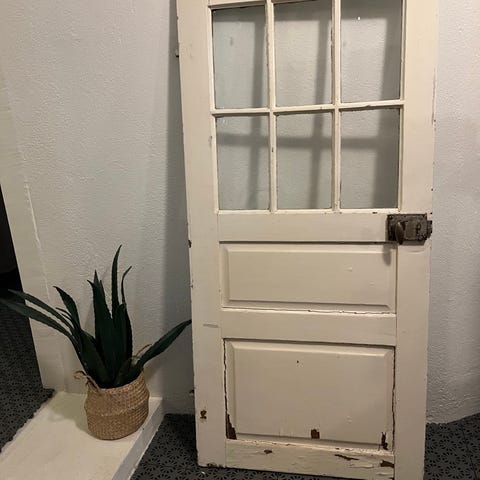 Flera spegeldörrar med varierande mått och tjocklekar. Bredd från 81,5 cm till 92 cm, höjd från 178 cm till 209 cm, tjocklek från 3 cm till 3,5 cm. Dörrarna har olika färger och ytskick med synliga tecken på användning och ålder.