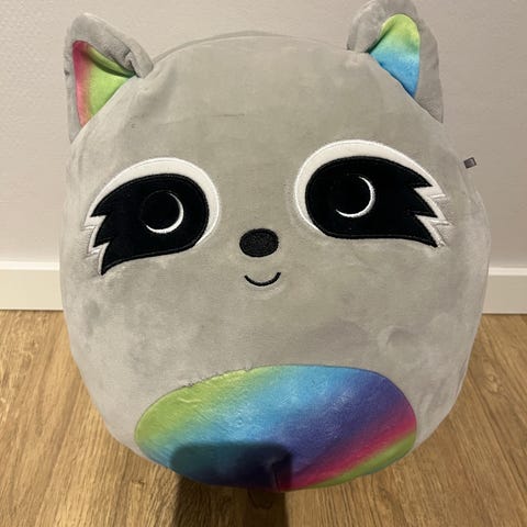 En fin regnbågsfärgad papegoja, utan namnlapp.
