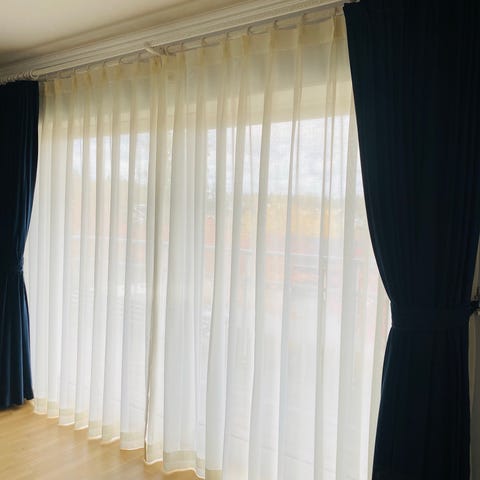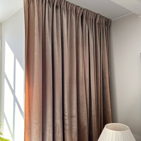 Specialsydd, kraftig mörkläggningsgardin av hög kvalitet. Helt ljusblockerande.