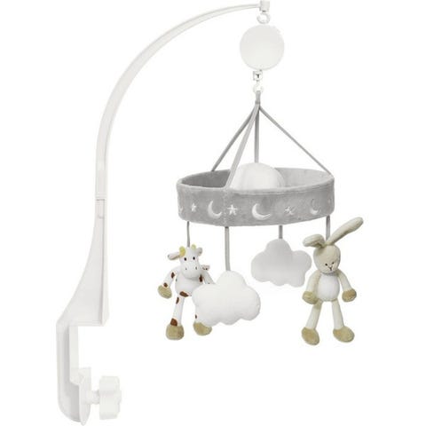 Taf Toys sängmobil med en inbyggd speldosa som spelar rogivande musik och har ett roterande stativ med fjärilar och moln.