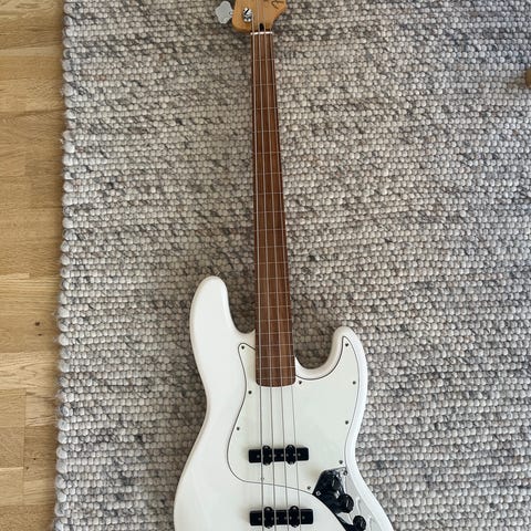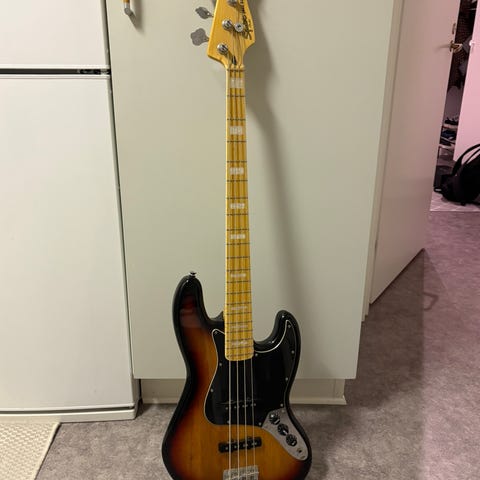 Bild 1-2: Squier Jazz bass i bra skick, lite lack som har släppt men det påverkar spelandet eller basens funktion.