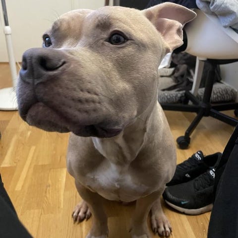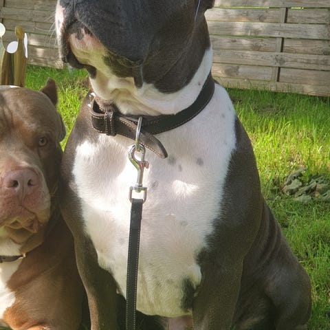 Hans namn är Boss, han kallas även för Bosse. Boss är en Amarican Bully XL tricolor purple lilac renrasig med en mycket fin stamtavla.