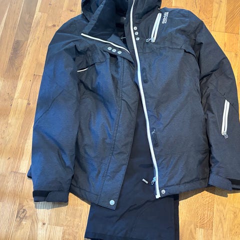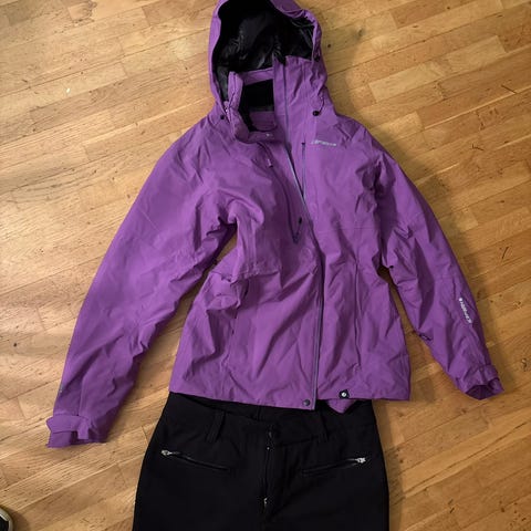 Bra kvalité på både jacka och byxor. Vattentäta (10.000) och vindtäta, snölås.