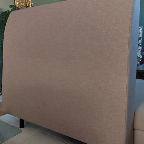 Sänggavel 140 Grå och tillhörande sängkappa säljes. Sängen säljs inte