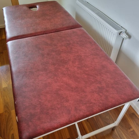 Tatuering eller Massagebänk med justerbar nackstöd och fotstöd. Färgen är svart och materialet är vadderat för komfort. Passar för olika typer av massage och behandlingar.