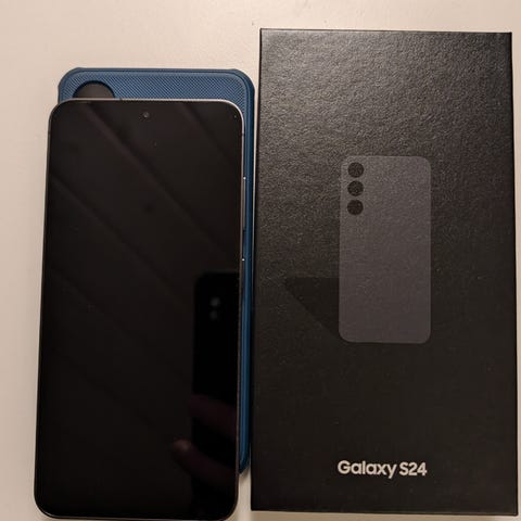 Samsung Galaxy S24 mobiltelefon med 128 GB lagringskapacitet.
