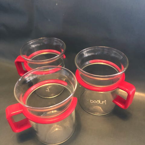 5st Glasmuggar för glögg/te från Nils Johan, hållare i ljus hård plast