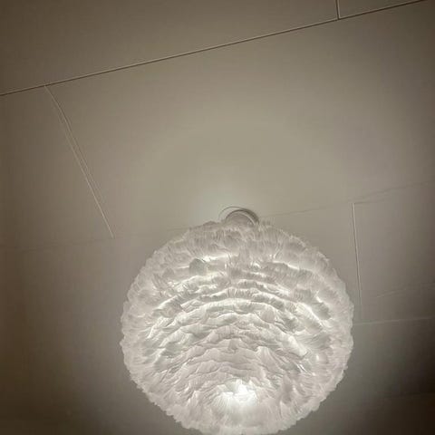 Fin fjäderlampa som ej får plats i mitt nya hem.