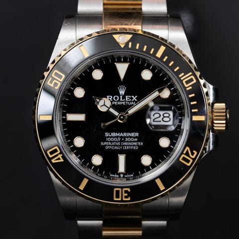 Rolex Submariner 126613LB herrklocka med tvåtons armband i stål och guld samt blå urtavla.