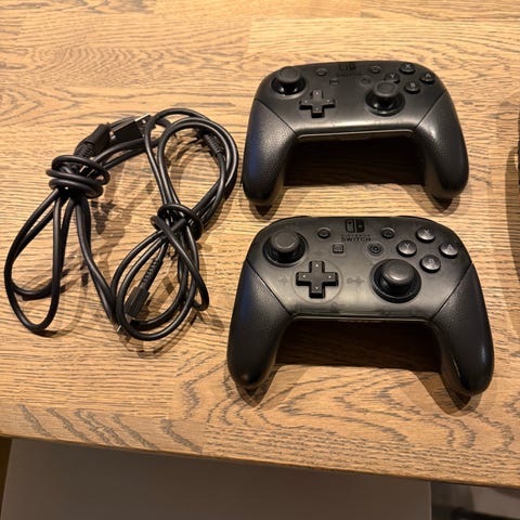 Nintendo Switch Pro Controller spelkontroll Nintendo original. Trådlös anslutning men Nintendo original USB-kabel följer med för laddning via dockningsstationen t.ex.