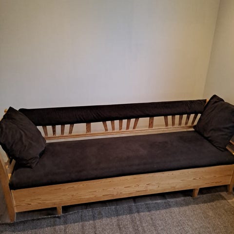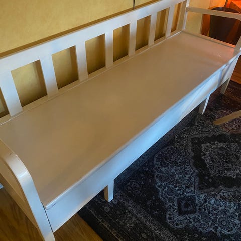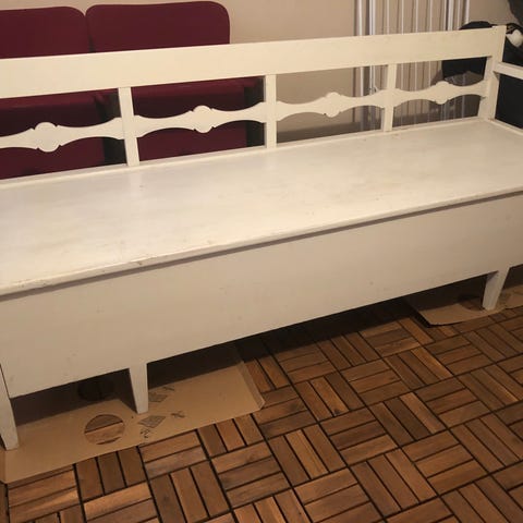 Säljer min fina kökssoffa som tyvärr inte får plats i mitt nya lilla kök. Nätt, enkel och med fantastisk förvaring. Shabby chic stil dvs grundad med vit färg.