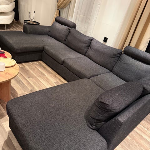 Säljer en bekväm och rymlig blå hörnsoffa. Soffan har mjuka dynor och är mycket skön att sitta i, perfekt för vardagsrum och familjemys. Klassisk design med fint mönstrat tyg och matchande kuddar ingår. Kom gärna med prisförslag!