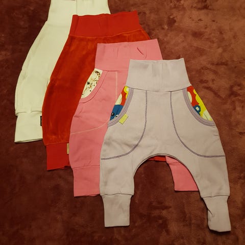 Unika handgjorda barnkläder som är mycket välsydda i högkvalitativa material som håller i generationer. Dotterns farmor är sömmerska och har sytt i princip alla hennes kläder, så det finns kläder i storlek 44-96 för den som är intresserad.