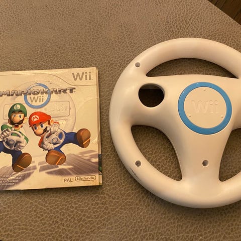 Nintendo Mario Kart Wii spel för Nintendo Wii-konsol. Spelet kommer med två vita rattar original