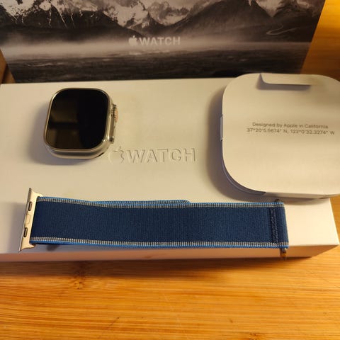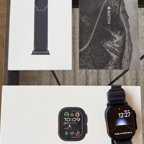 Säljer en helt ny och oöppnad Apple Watch Ultra med svart armband.