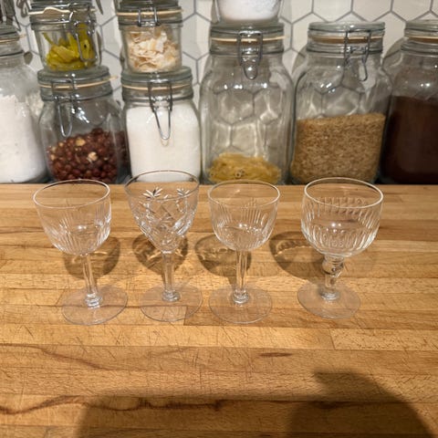 glas för vinset i 6-pack. Klara glas gjorda av glasmaterial, avsedda för servering av vin.