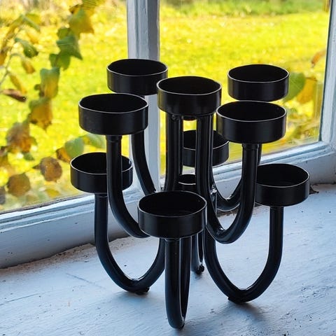 Ljusstake i vackert smide för fyra ljus. Köpt i en liten inredningsbutik på Söder i Stockholm.